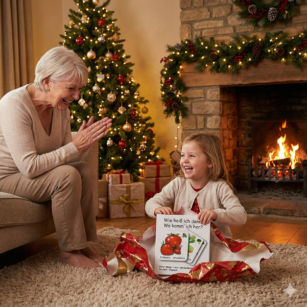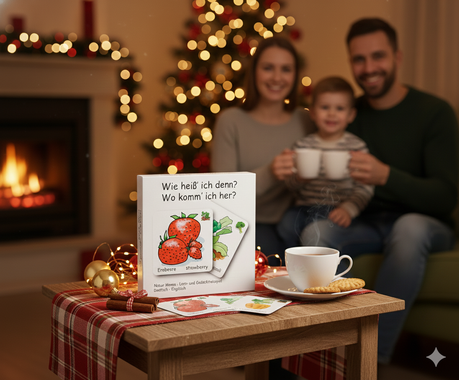 Ihre Kinder und Enkel lernen spielerisch die Herkunft unserer Lebensmittel kennen. Bei unserem Spiel suchen Sie nicht zwei gleiche Karten, sondern das passende Pflanzenmotiv zur Frucht. Ganz nebenbei erweitern die Kinder ihren Wortschatz auf Deutsch und Englisch.